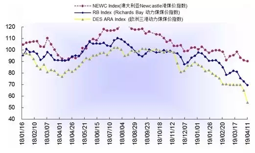 查看詳情+本周(4.8,-4.12,下同),國際三港動(dòng)力煤價(jià)格指數(shù)全部上漲。截止4月11日,澳大利亞紐卡斯?fàn)柛蹌?dòng)力煤價(jià)格指數(shù)85.47美元/噸,較上周上漲6.15美元/噸,漲幅為7.75%;南非理查德港動(dòng)力煤價(jià)格指