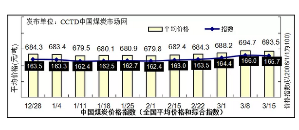 本期中國(guó)煤炭?jī)r(jià)格指數(shù)小幅回落。根據(jù)監(jiān)測(cè)數(shù)據(jù)測(cè)算,3月15日,中國(guó)煤炭?jī)r(jià)格指數(shù)(全國(guó)綜合指數(shù))為165.7點(diǎn),比上期下降0.3點(diǎn)。